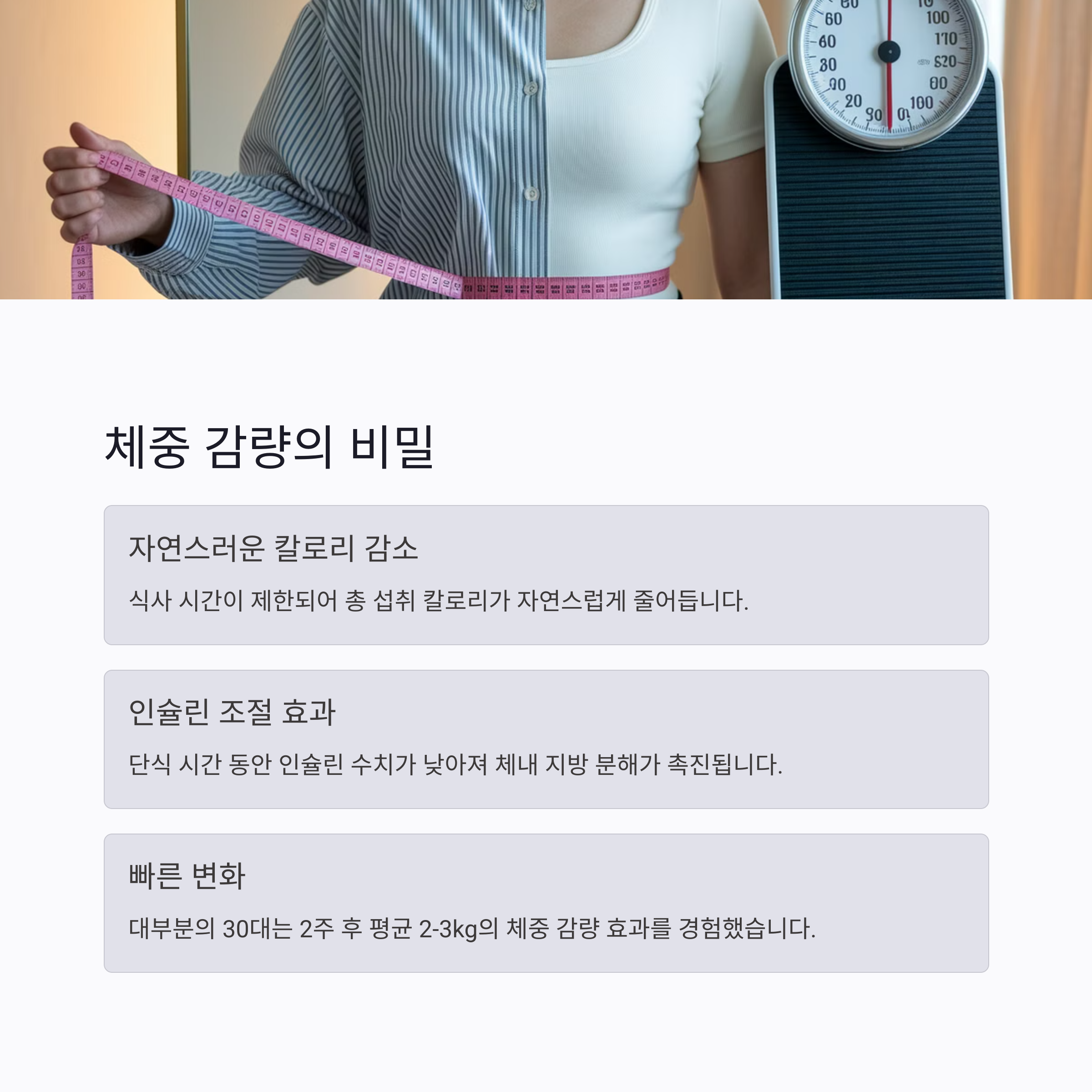 간헐적 단식을 시작하고 가장 먼저 느낀 건 체중계의 숫자가 줄어드는 거예요. 연구에 따르면 10주 동안 평균 3-5kg의 체중 감량 효과가 있다고 해요[1]. 실제로 저도 2개월 만에 4kg가 빠졌어요. 거울 볼 때마다 뿌듯함이 장난 아니에요!