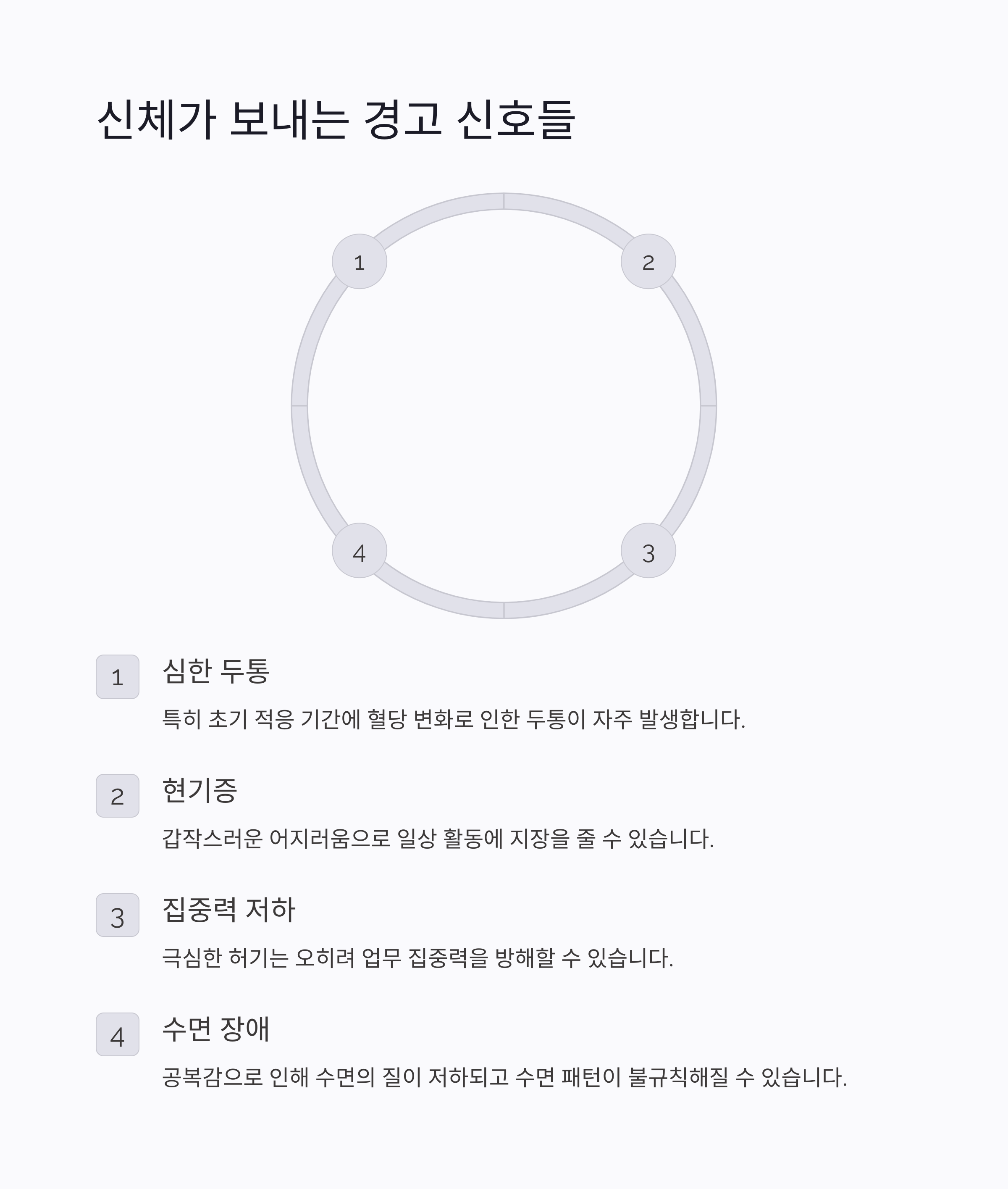특히 처음 시작할 때 두통과 어지러움이 꽤 심했어요. 일상생활에 지장이 있을 정도였죠