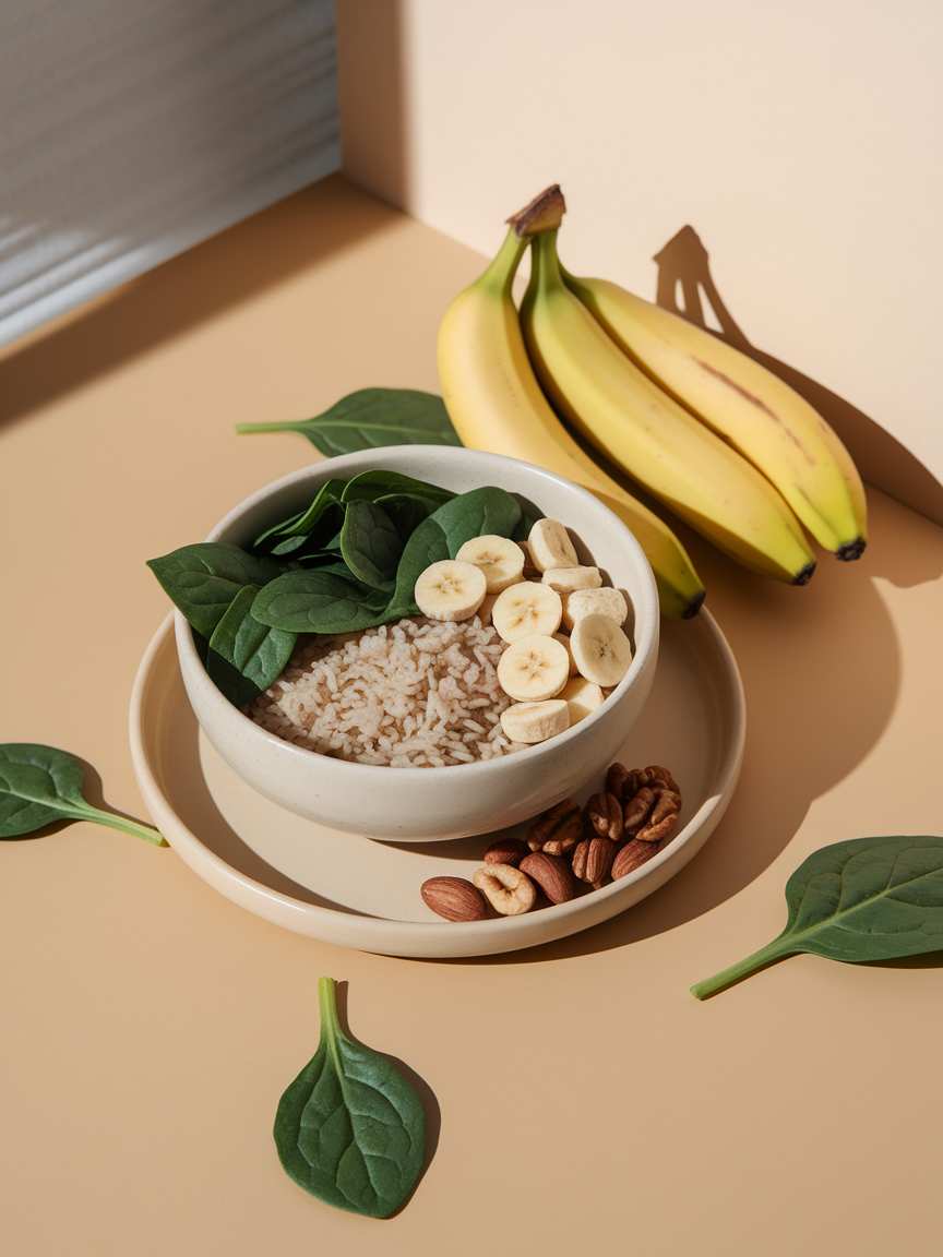 💡 추천 음식: 바나나, 견과류, 시금치, 현미