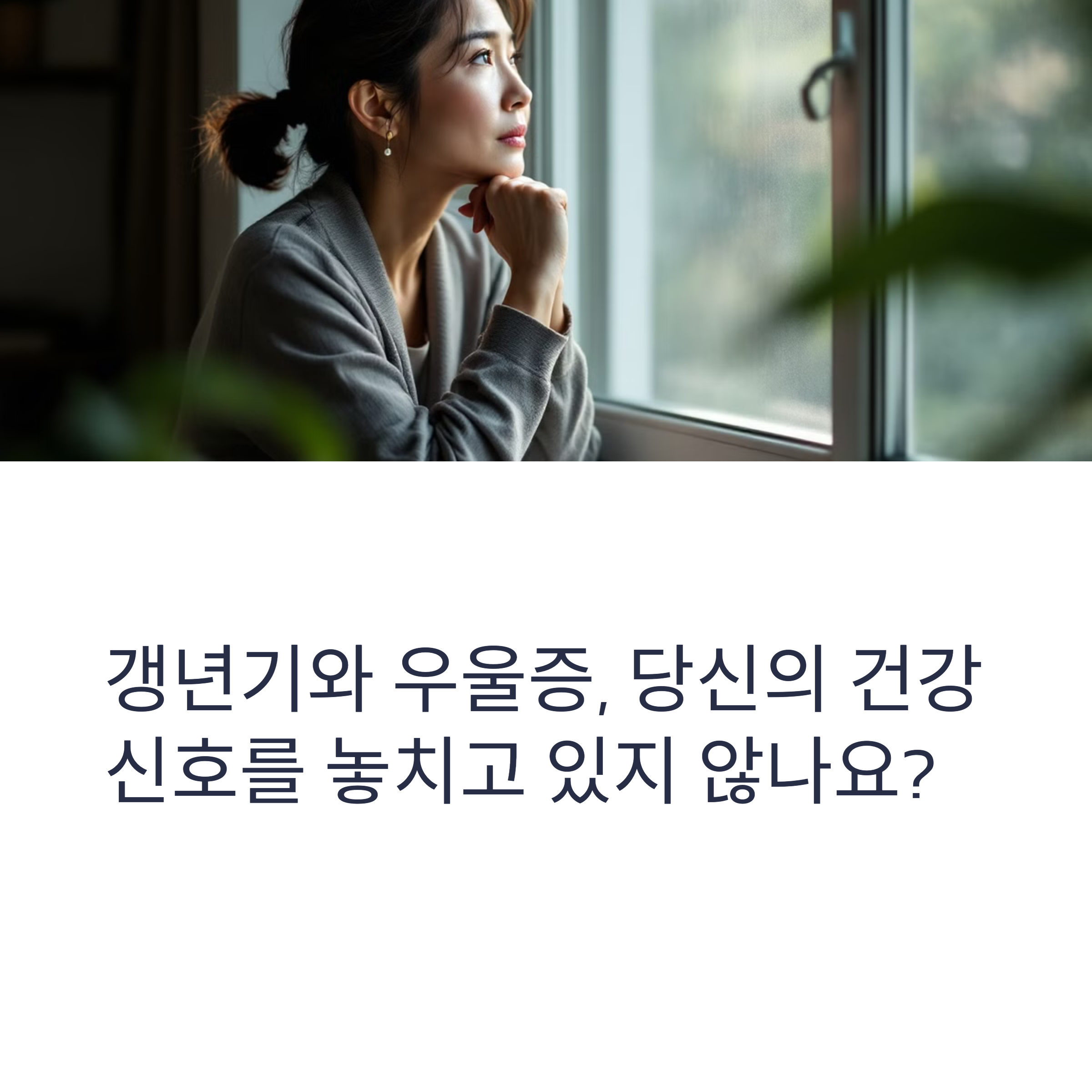 혹시 위 증상들이 일상생활에 지장을 줄 정도로 심각하다면, 단순한 갱년기를 넘어 우울증이 동반되었을 가능성도 있습니다. 갱년기 우울증은 일반적인 갱년기 증상보다 더 적극적인 관리가 필요한 상태입니다.