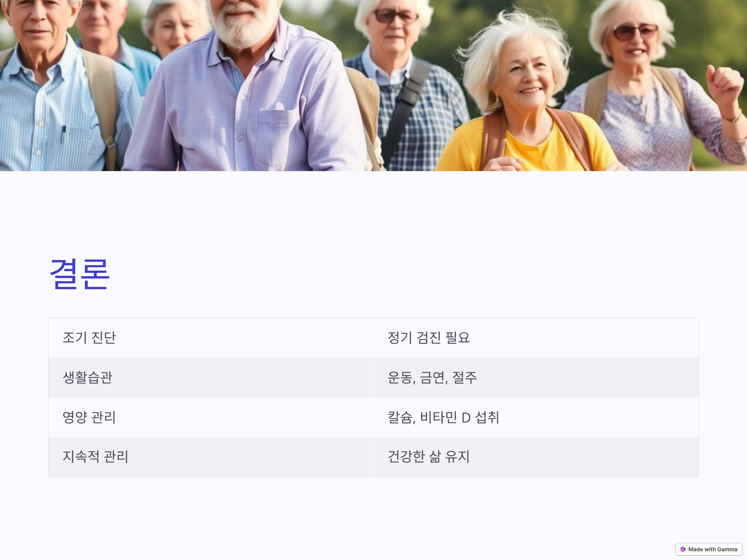 앞으로도 골다공증을 잘 관리하여 건강한 삶을 유지하는 것이 중요합니다.