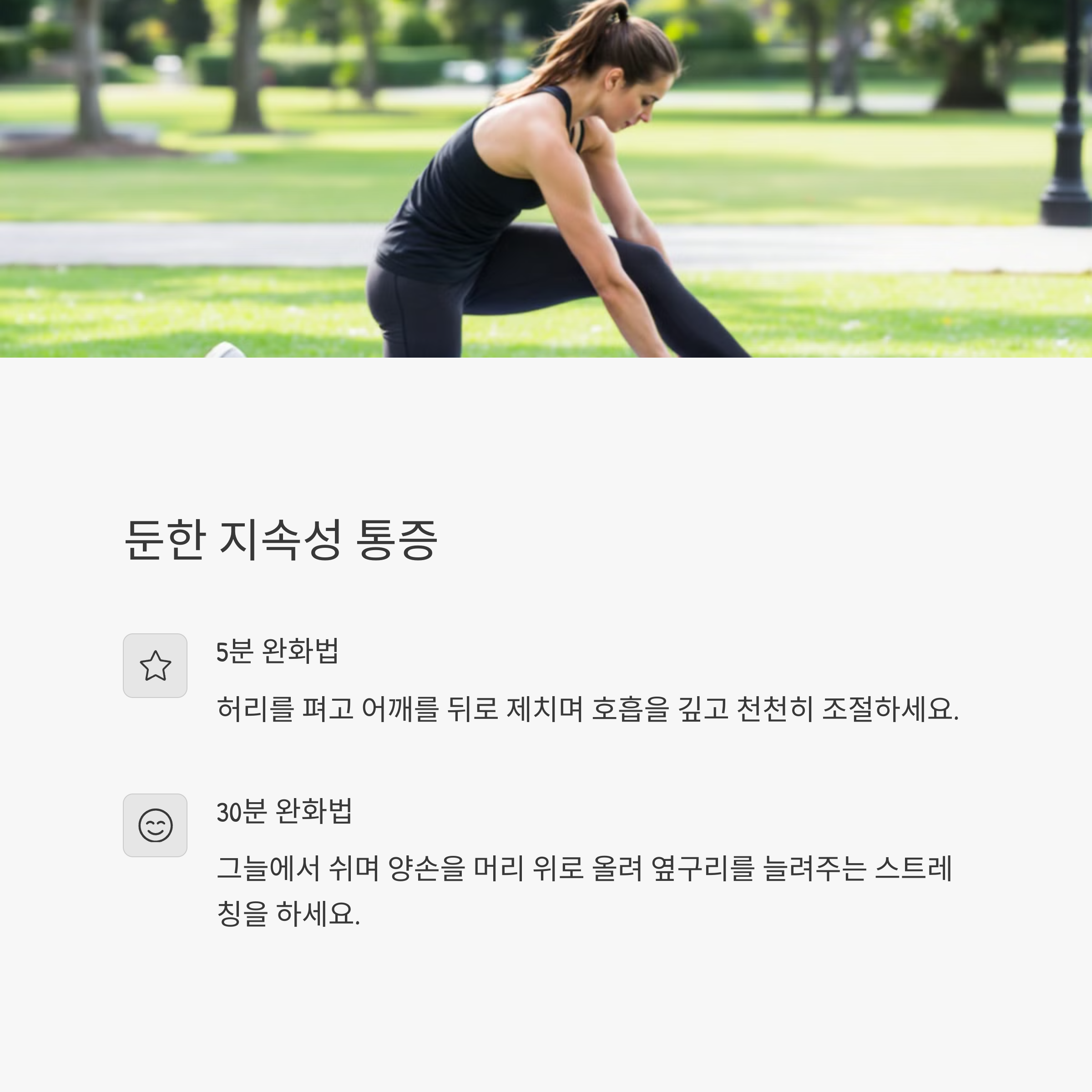 - 깊은 호흡을 하며 통증 부위를 부드럽게 누르세요.