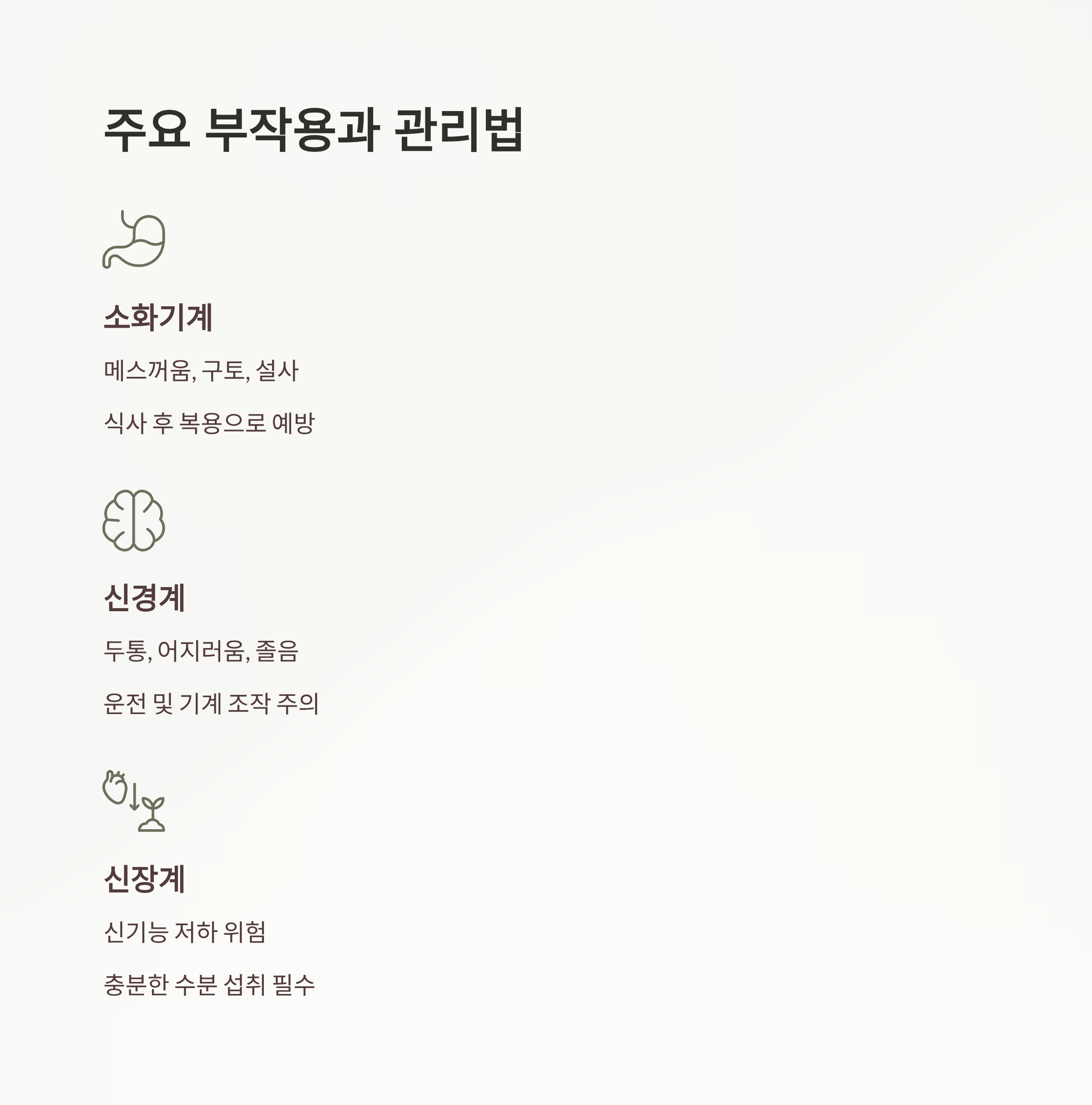 - 위장 장애: 속쓰림, 메스꺼움, 복통