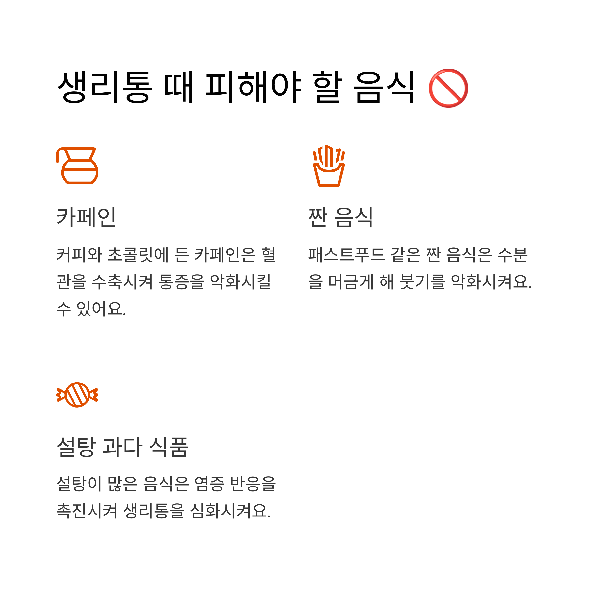 2. 생리통 심할 때 피해야 할 음식 🚫