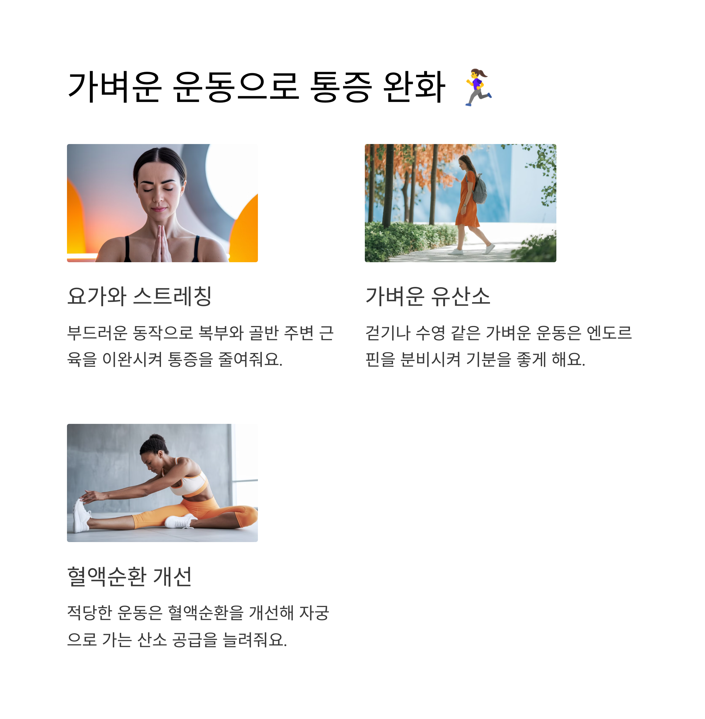 특히 요가, 스트레칭, 가벼운 산책 같은 운동이 도움돼요!