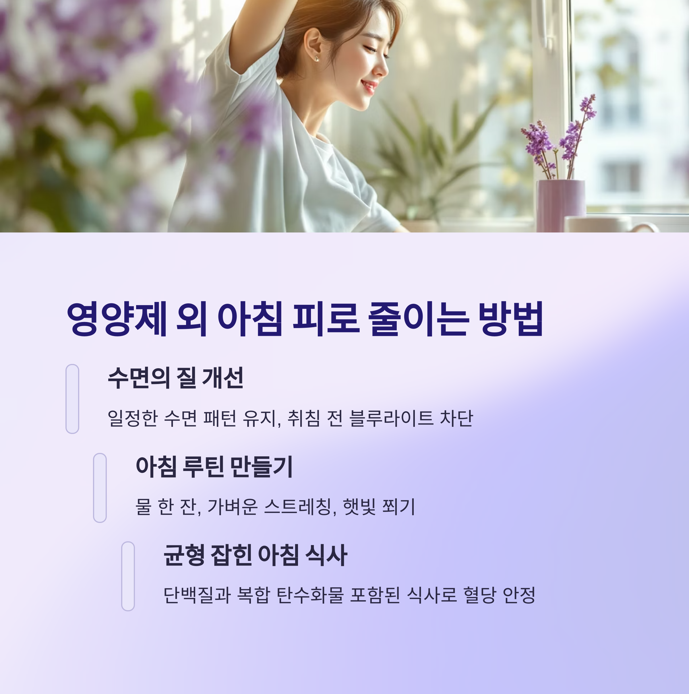 - 영양제 외에 아침 피로를 줄이는 방법은 무엇이 있을까요?