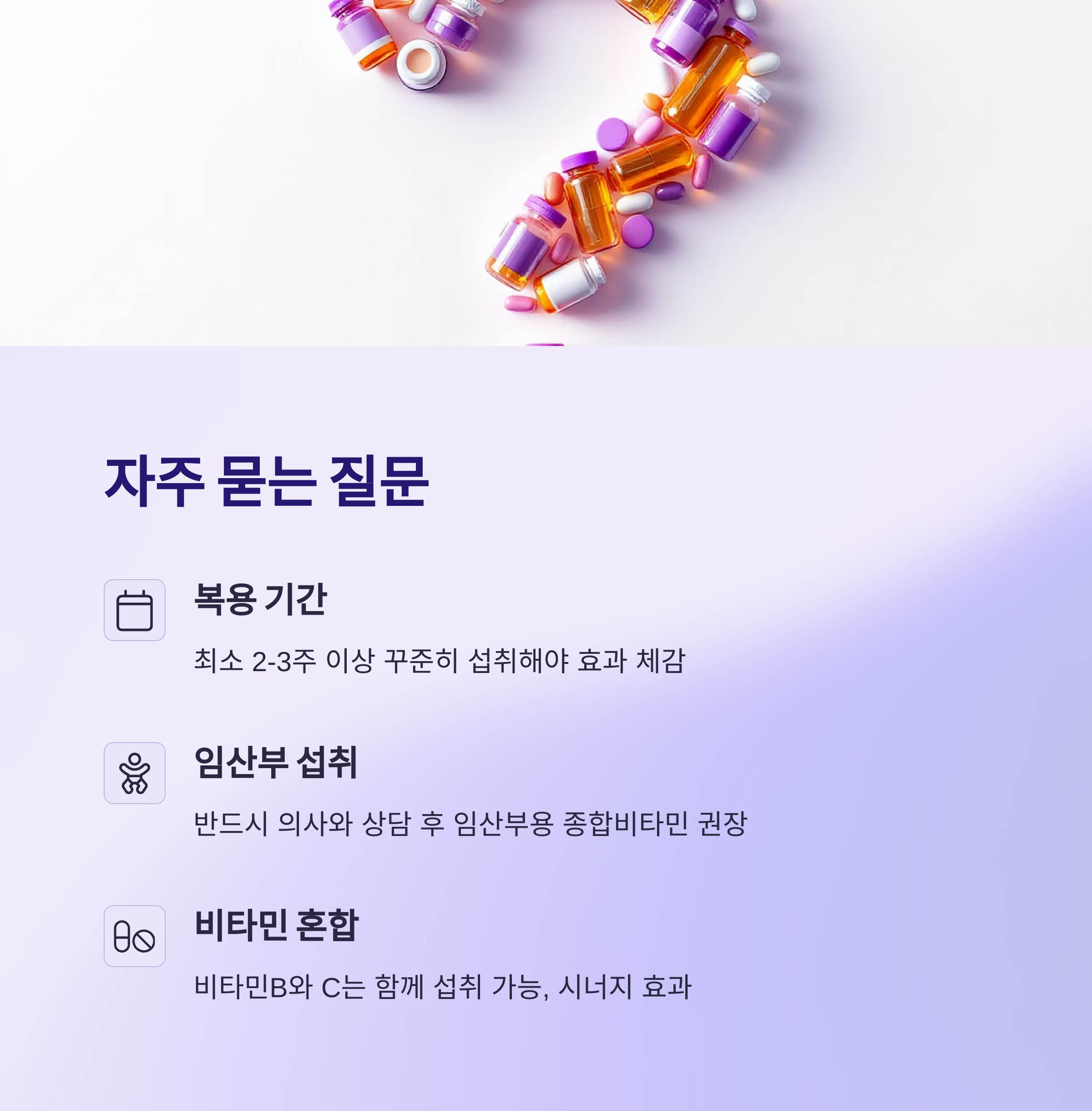 하지만 영양제는 만병통치약이 아니에요. 충분한 수면, 균형 잡힌 식사, 규칙적인 운동과 함께 병행해야 최상의 효과를 볼 수 있답니다.