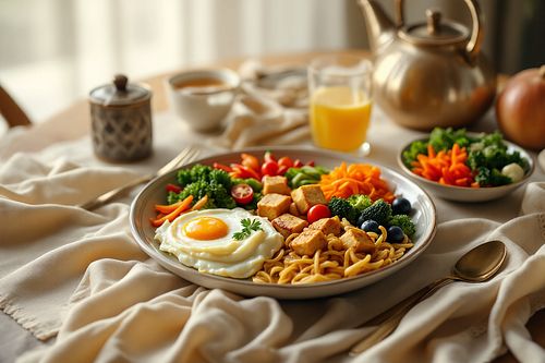 - 아침: 계란, 두부, 요거트, 견과류 등 단백질이 들어간 메뉴를 최소 1가지 추가하기.