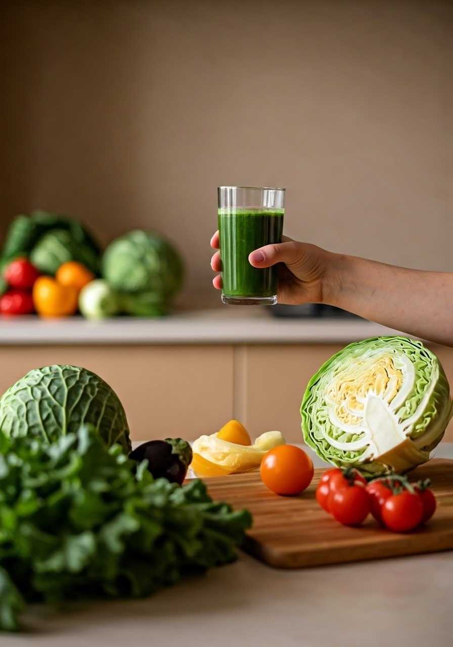 양배추즙의 섬유질은 장 건강을 돕고, 비타민 K는 혈액 순환을 원활하게 만들어 피부를 건강하게 유지하는 데 기여합니다.