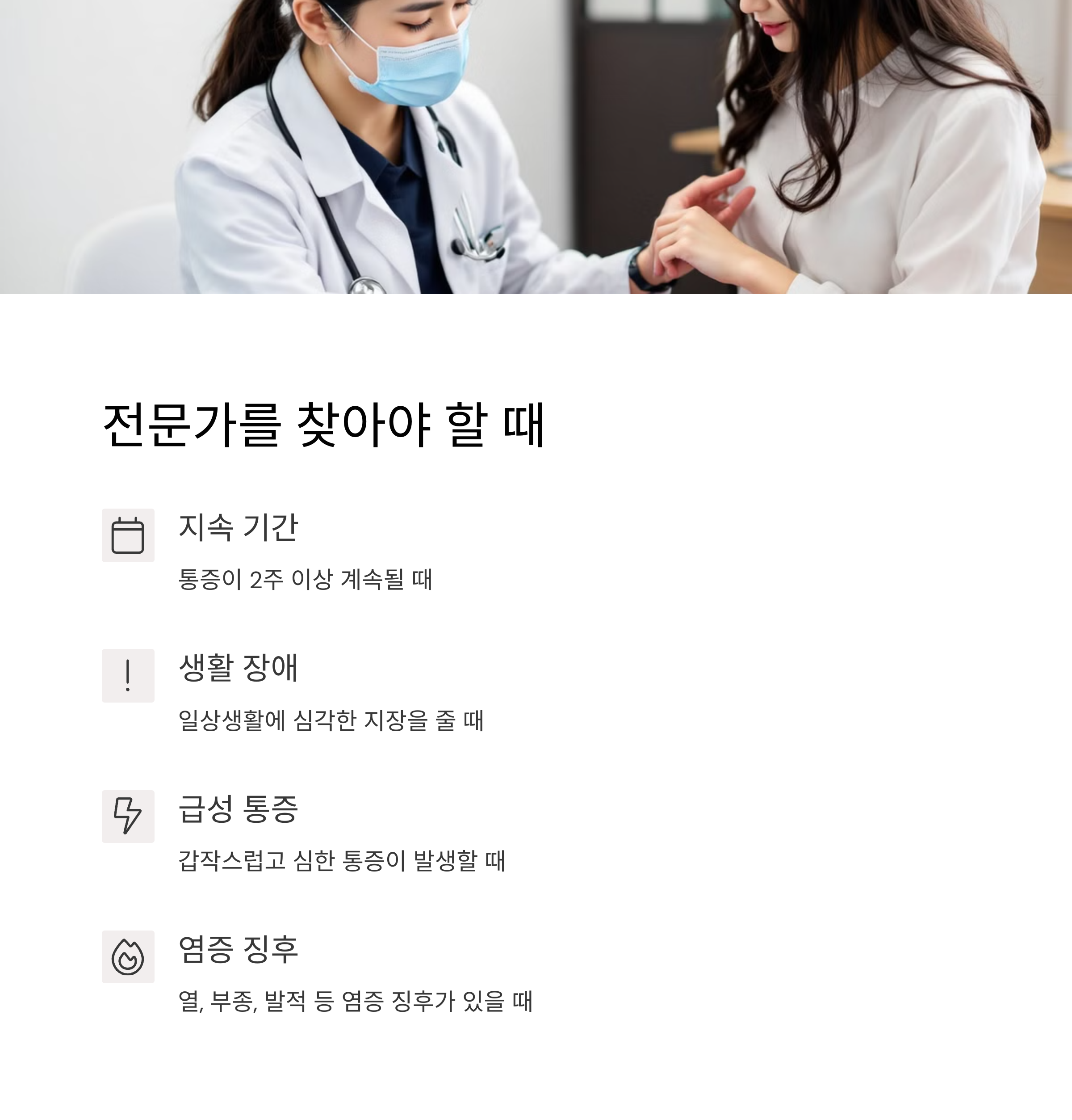 아무리 해도 통증이 가시지 않는다면, 전문가의 도움이 필요할 때예요.
