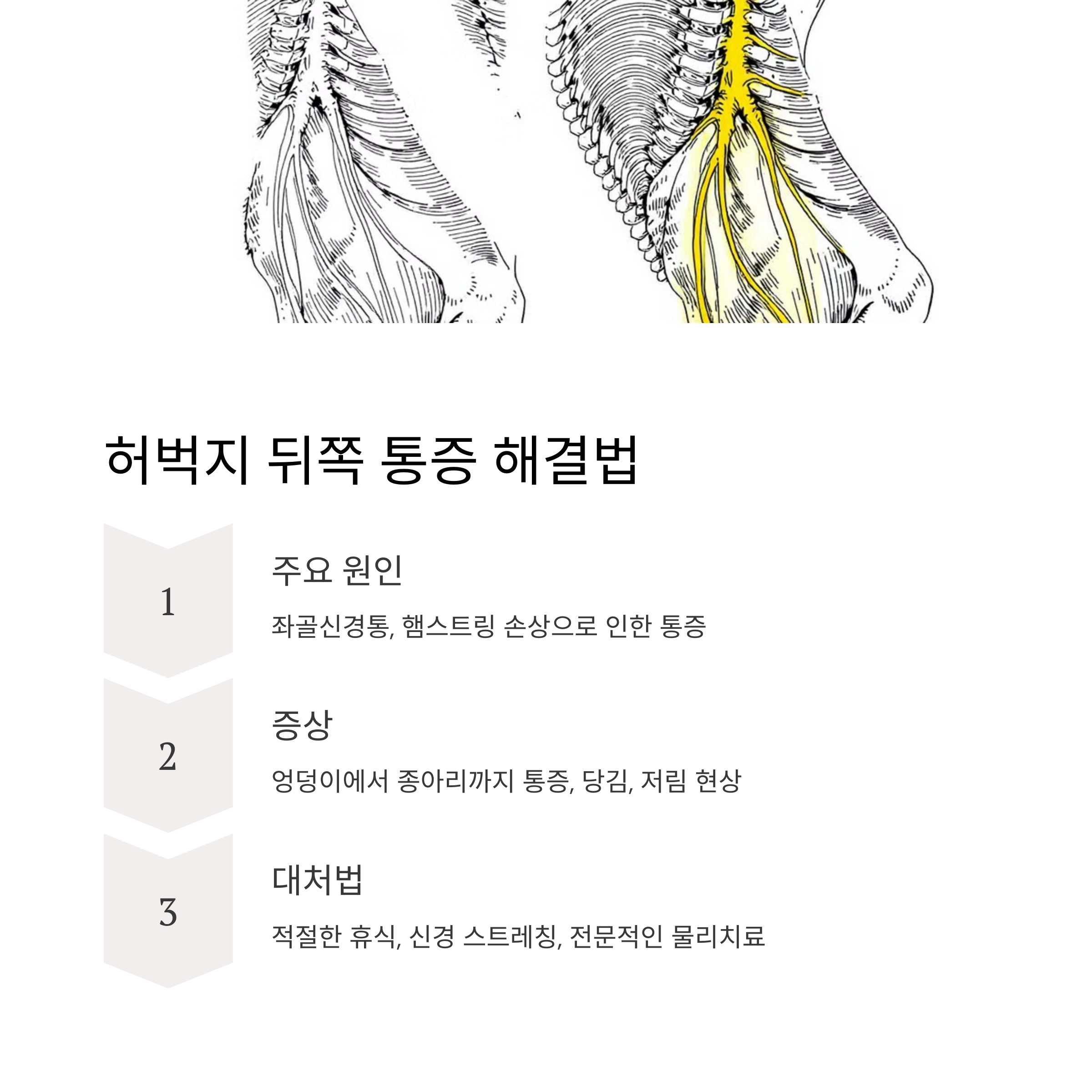 - 신경 압박: 좌골신경이 눌리면 허벅지까지 통증이 퍼질 수 있답니다.
