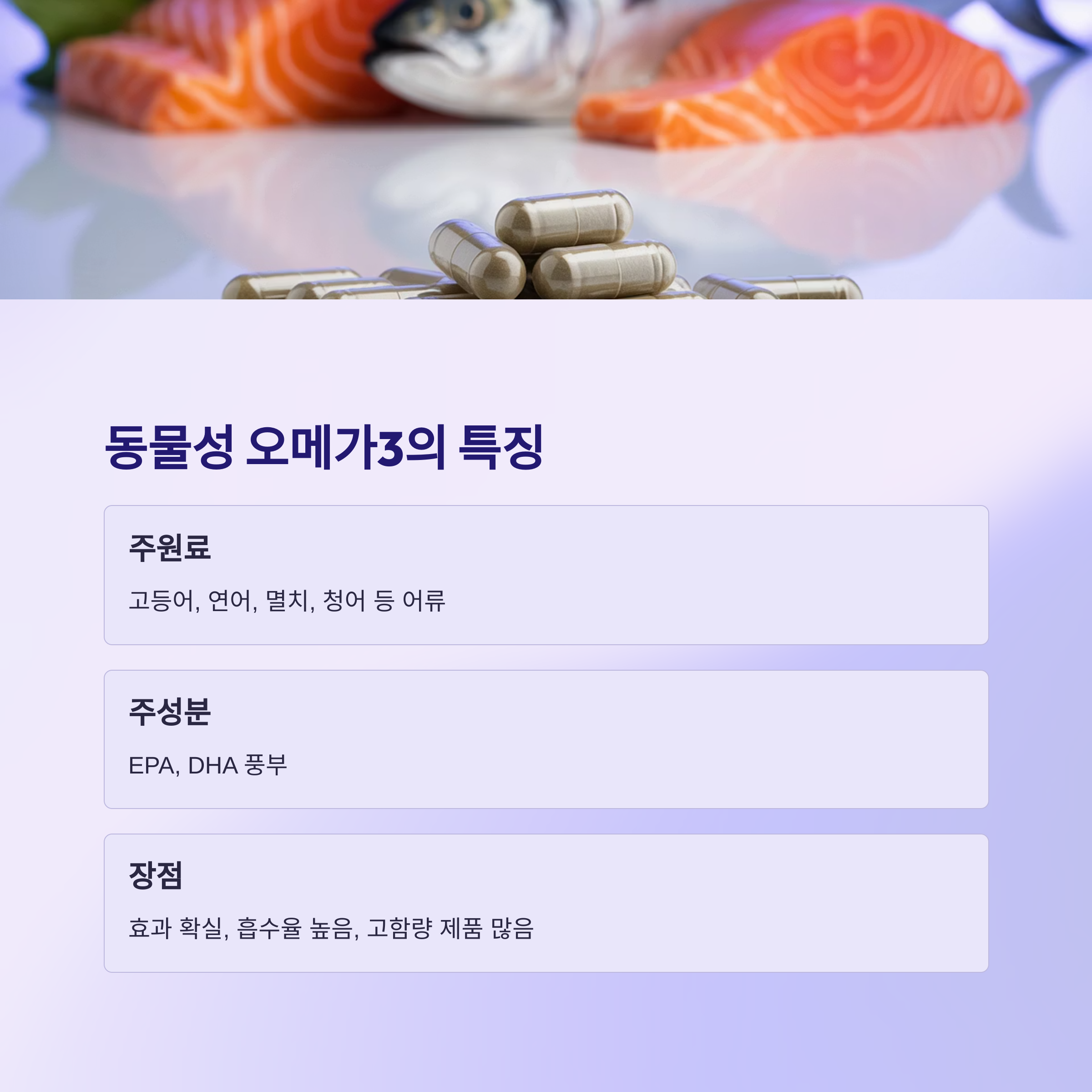 특히 두뇌 건강, 심혈관 질환 예방을 위해서는 동물성 오메가3가 더 효과적일 수 있어요.