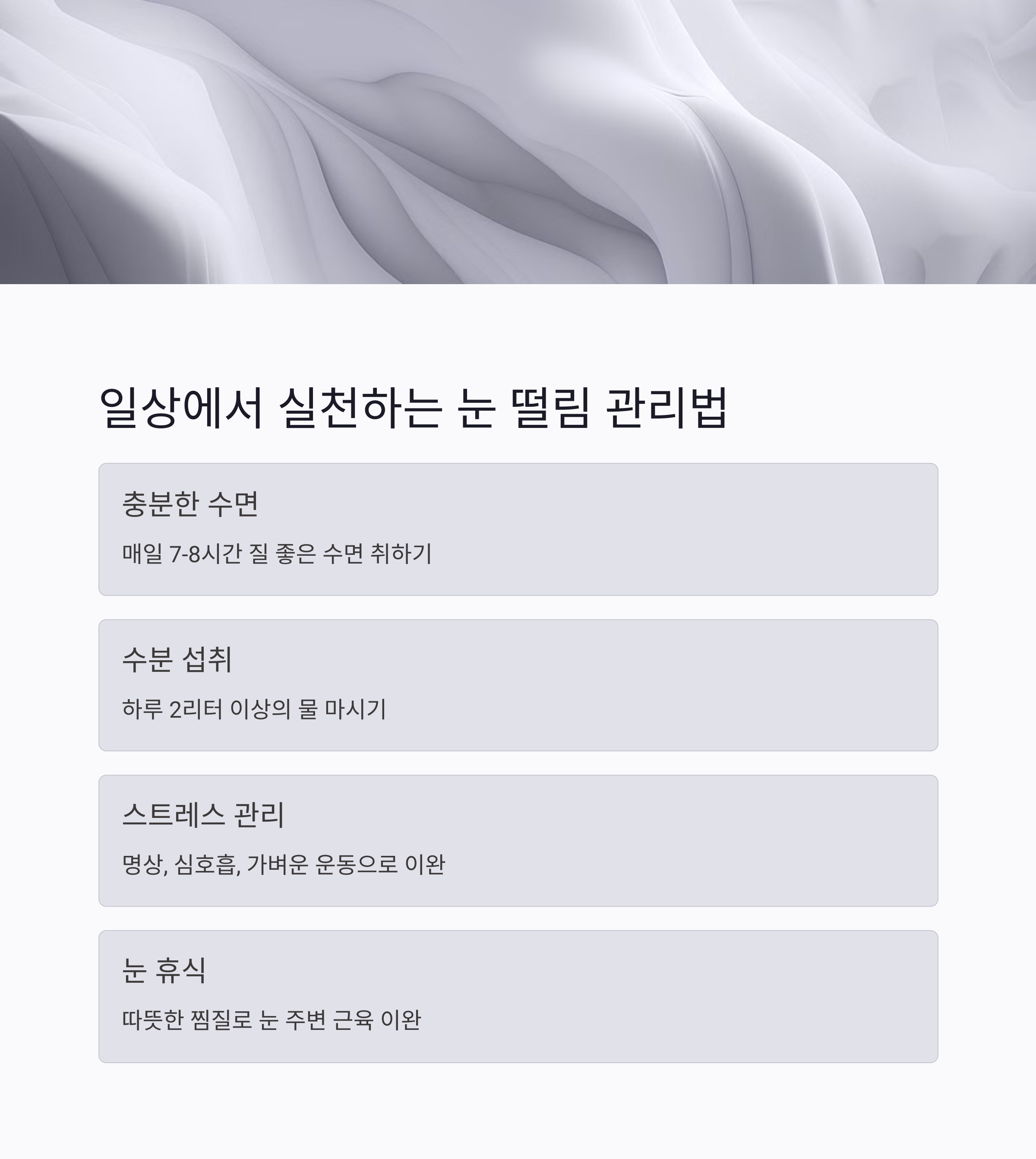 마지막으로, 눈 떨림을 예방하고 눈 건강을 지키기 위한 일상 관리법을 알아볼까요?
