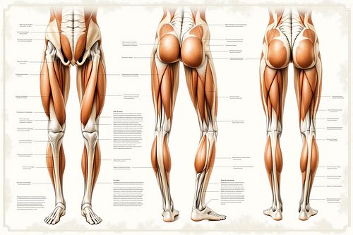 허벅지는 앞(대퇴사두근), 뒤(햄스트링), 옆(대퇴근막장근)으로 나뉘며, 각 부위에 근육·신경·혈관이 다르게 분포해 있어요.