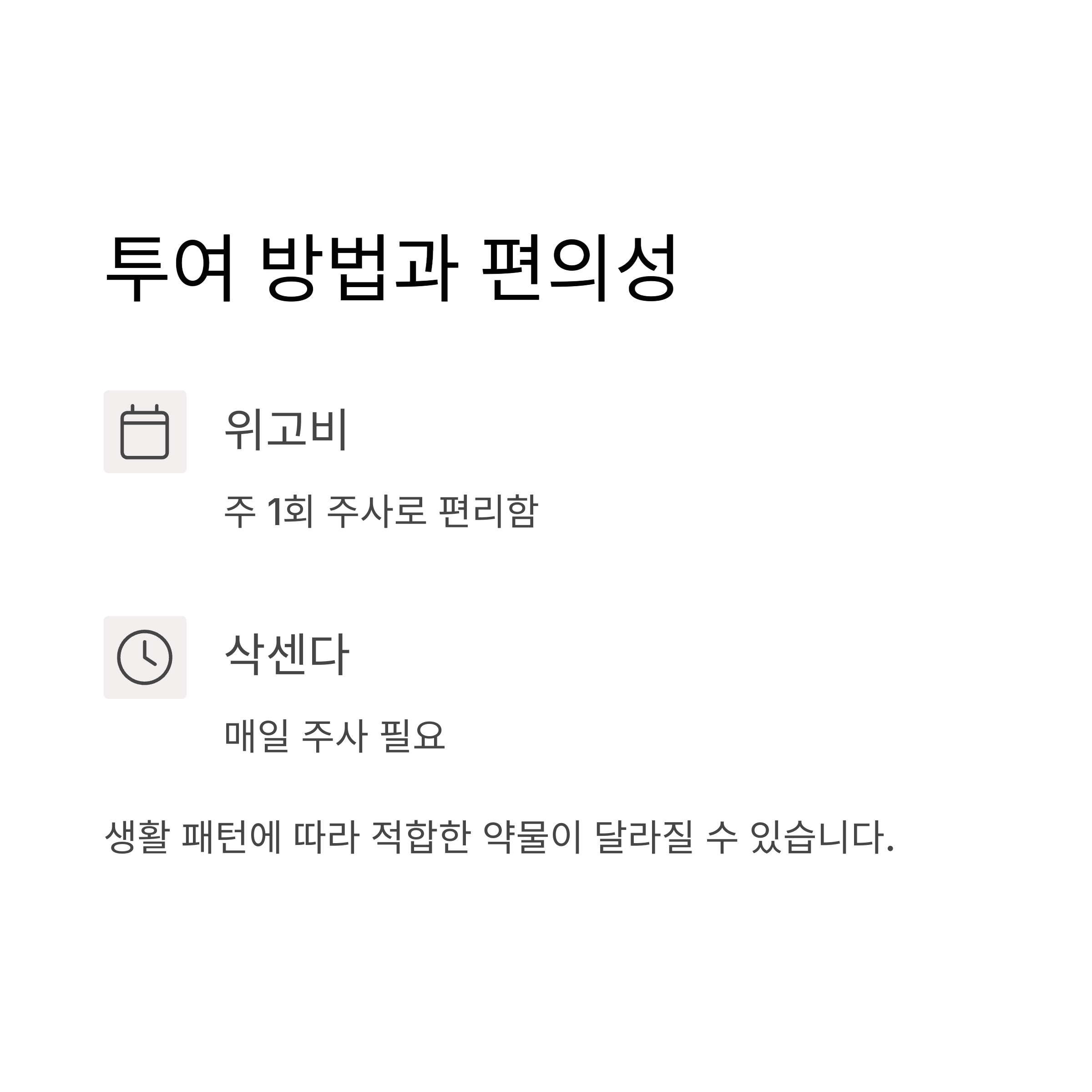 - 주 1회 투여가 더 편리한 경우