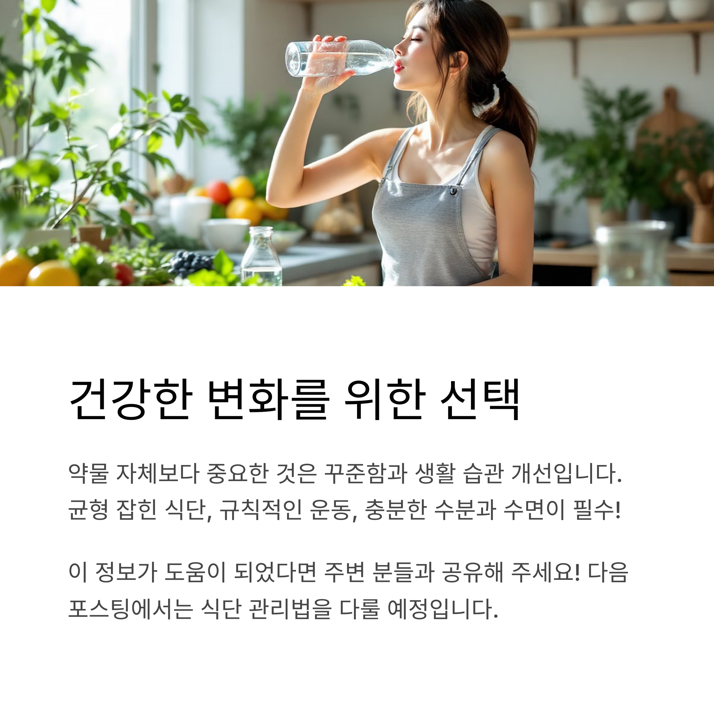 - 균형 잡힌 식단: 약물이 식욕을 억제해도 영양소는 골고루 섭취해야 해요. 단백질, 채소, 과일, 통곡물을 중심으로 식단을 구성하세요.