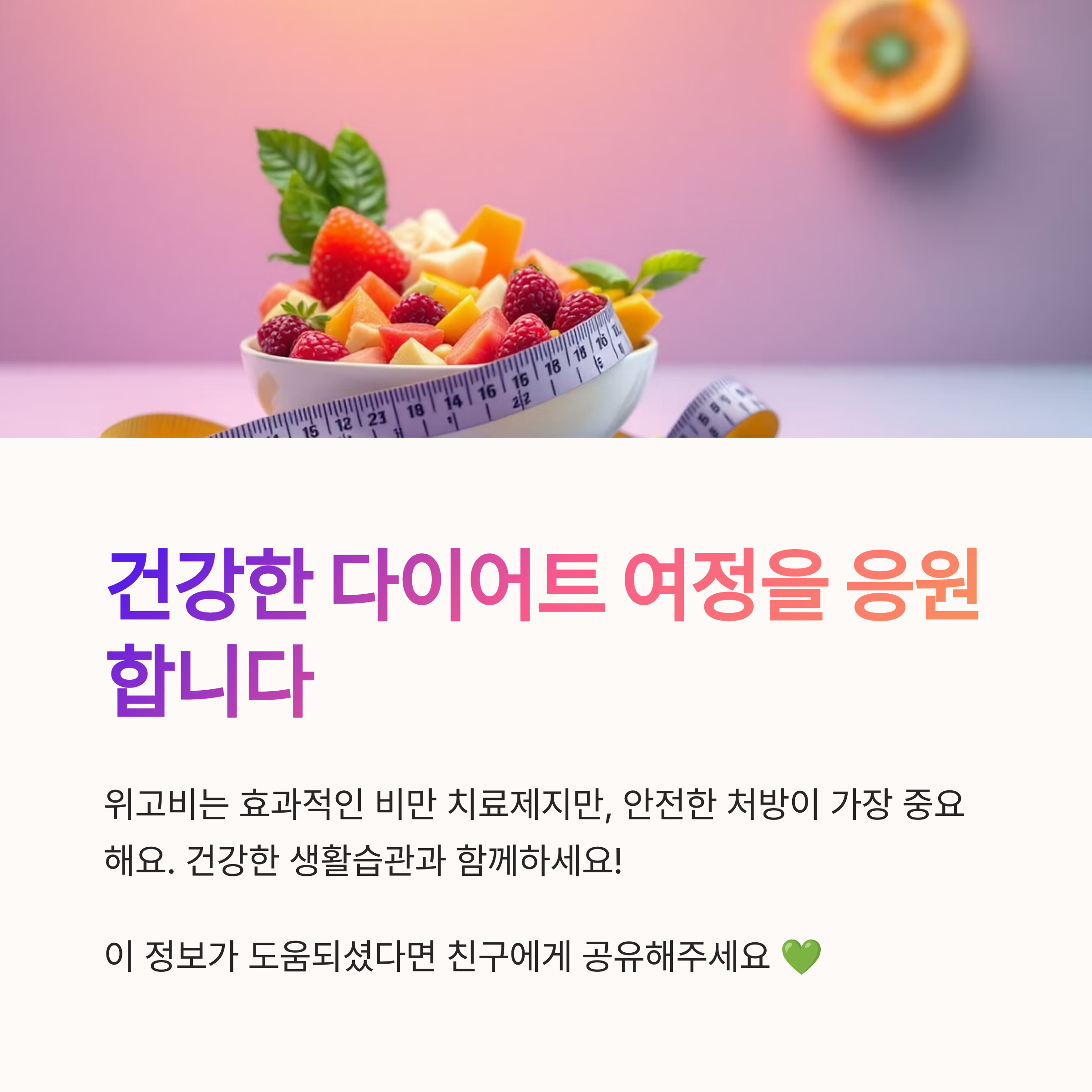 다이어트는 단순히 체중을 줄이는 것이 아니라 건강한 생활습관을 만드는 과정이에요. 위고비가 그 여정에 도움이 되길 바라며, 여러분의 건강한 변화를 응원할게요!