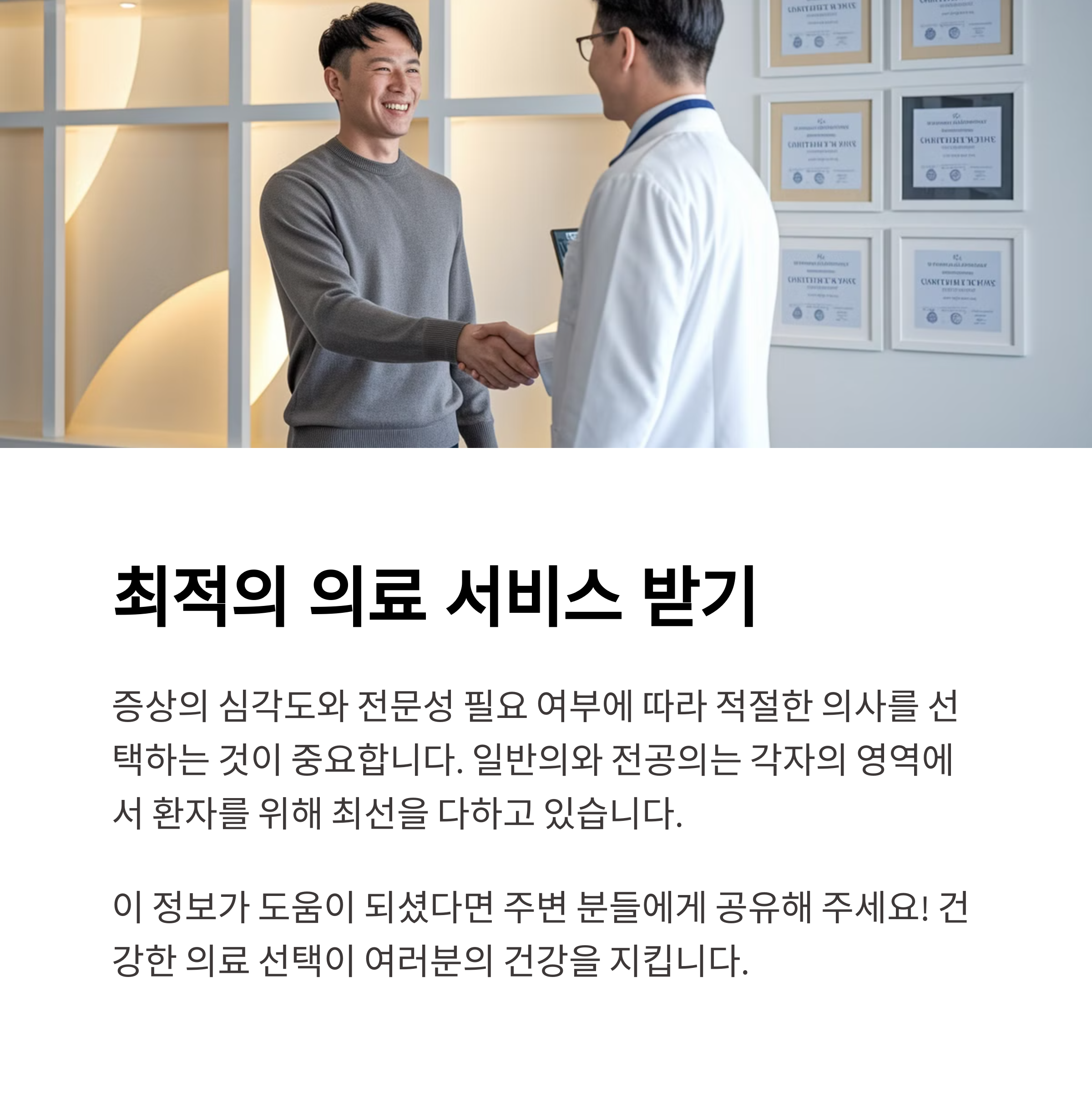 - 가벼운 질환이나 기본적인 건강관리가 필요하다면 일반의를 찾는 것이 적합해요.