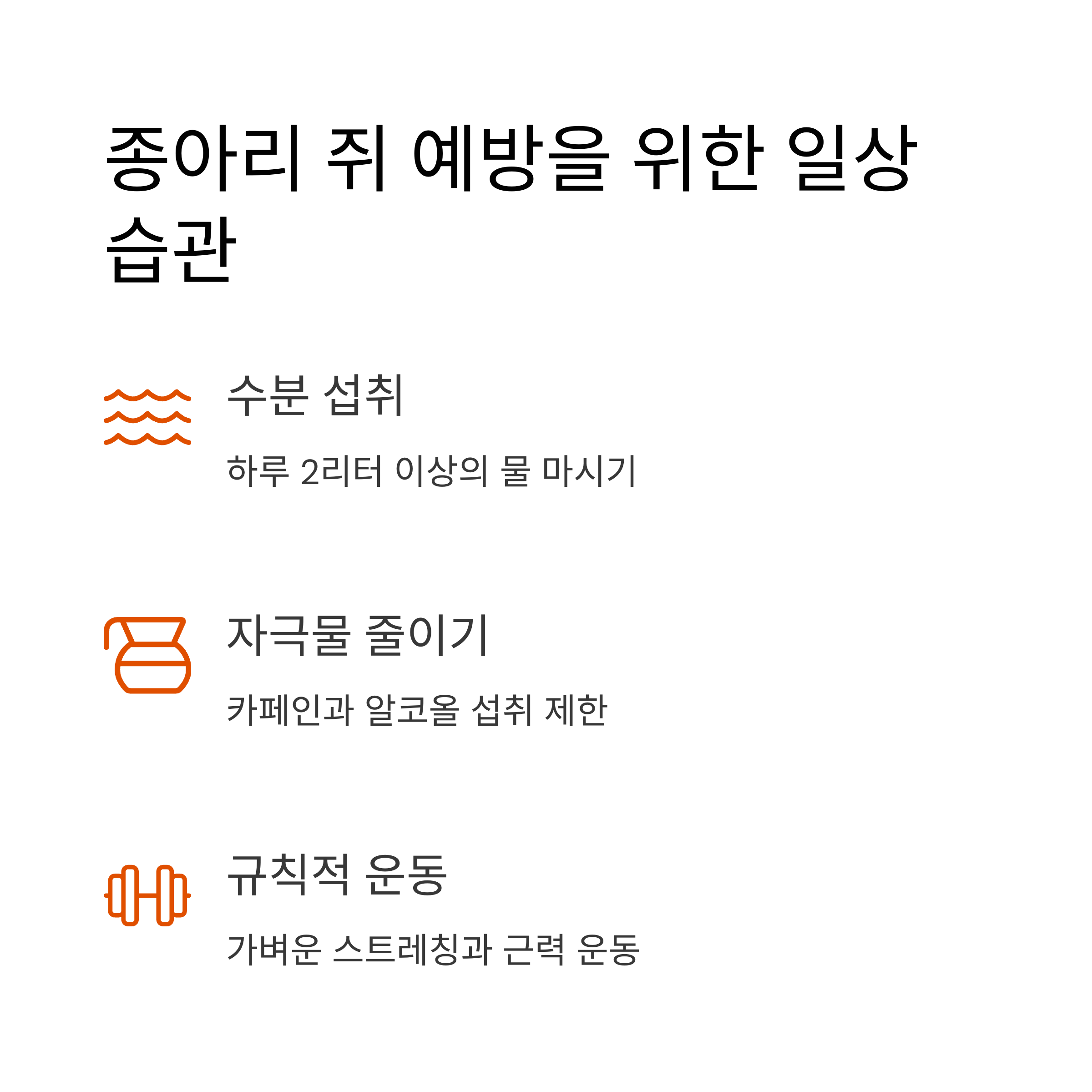 - 종아리 쥐 예방을 위한 일상 습관