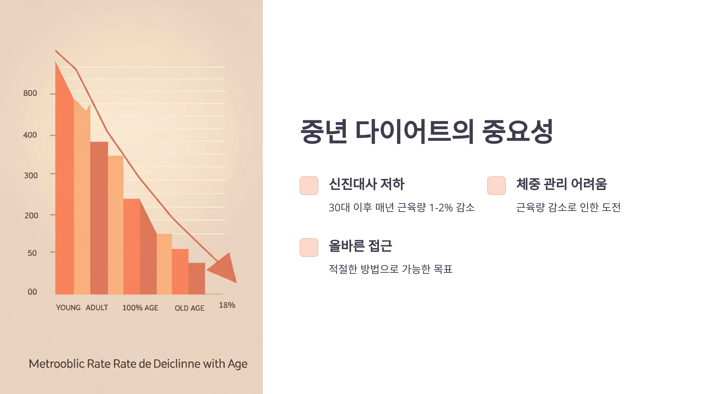 중년이 되면 신진대사가 느려지고 근육량이 줄어들어 체중 관리가 어려워지죠. 보통 30대 이후부터 매년 근육량이 1-2%씩 감소한다고 해요. 하지만 포기하지 마세요! 올바른 방법으로 접근하면 충분히 가능합니다. 이제 흔한 실수들과 그 극복 방법을 하나씩 살펴볼게요.