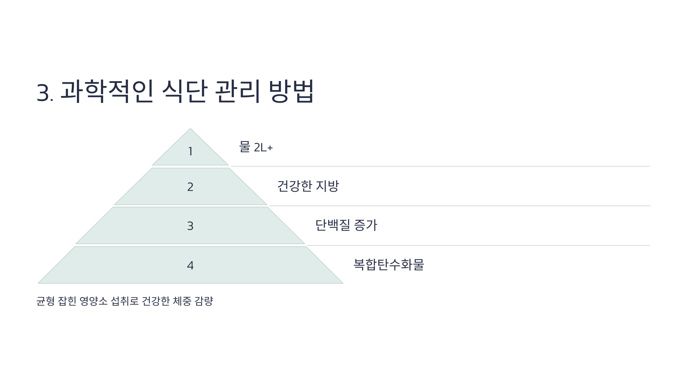 균형 잡힌 식단이 중요해요. 과도한 제한은 오히려 역효과를 낼 수 있어요. 영양소의 적절한 균형과 칼로리 조절이 핵심입니다.