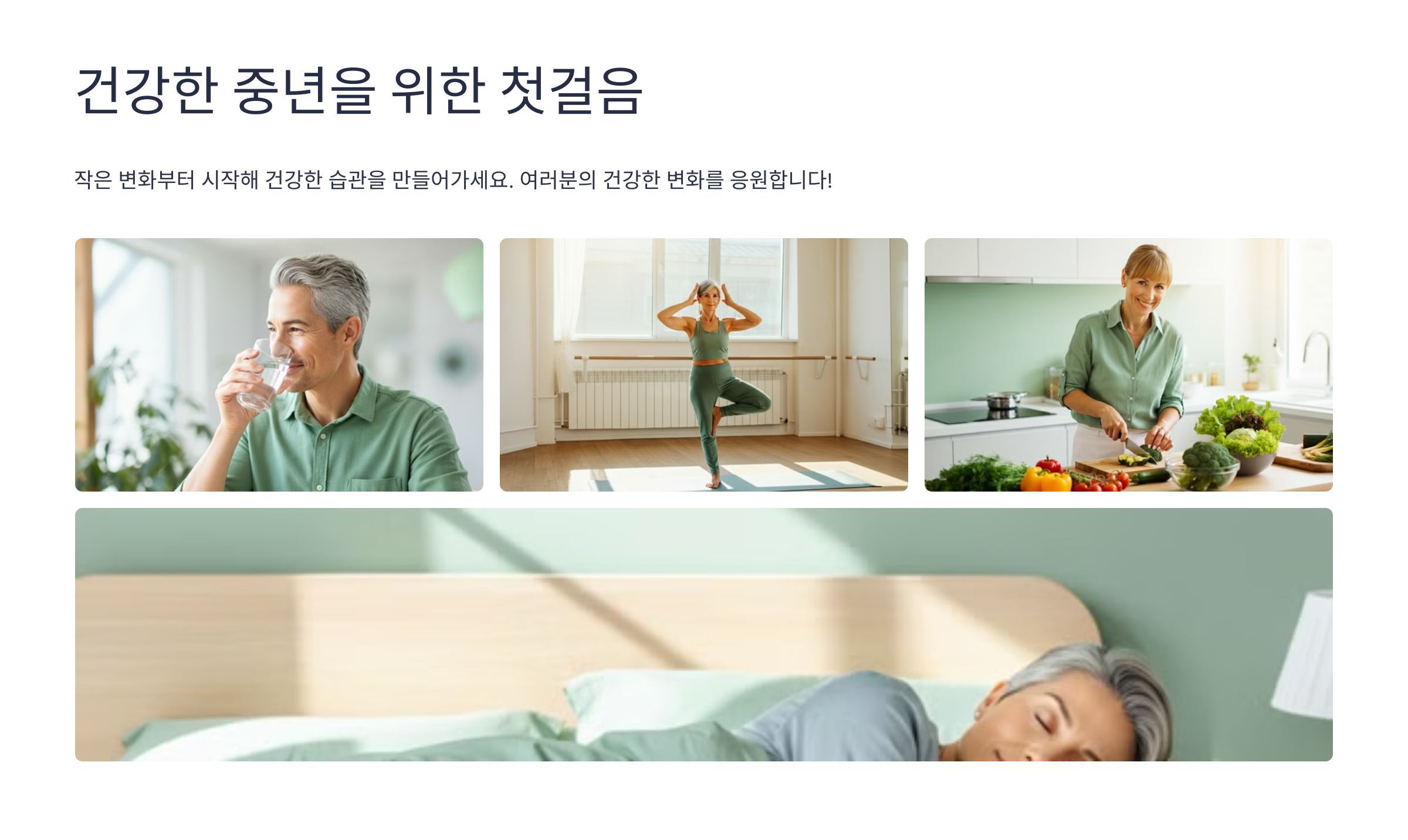 건강하고 활기찬 중년을 위해 지금 바로 시작해볼까요? 여러분의 건강한 변화를 응원합니다! 함께 힘내봐요!