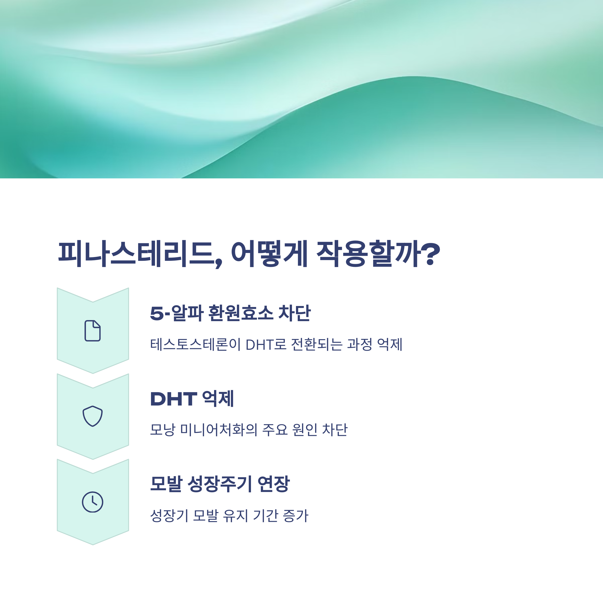 피나스테리드는 경구용 탈모 치료제로, 주로 남성형 탈모증(안드로겐성 탈모) 치료에 사용됩니다. 이 약물은 5-알파 환원효소를 억제하여 테스토스테론이 디하이드로테스토스테론(DHT)으로 전환되는 것을 막습니다. DHT는 모낭을 축소시켜 탈모를 유발하는 주요 호르몬이기 때문에, 이를 억제함으로써 탈모 진행을 늦추고 모발 성장을 촉진할 수 있습니다.