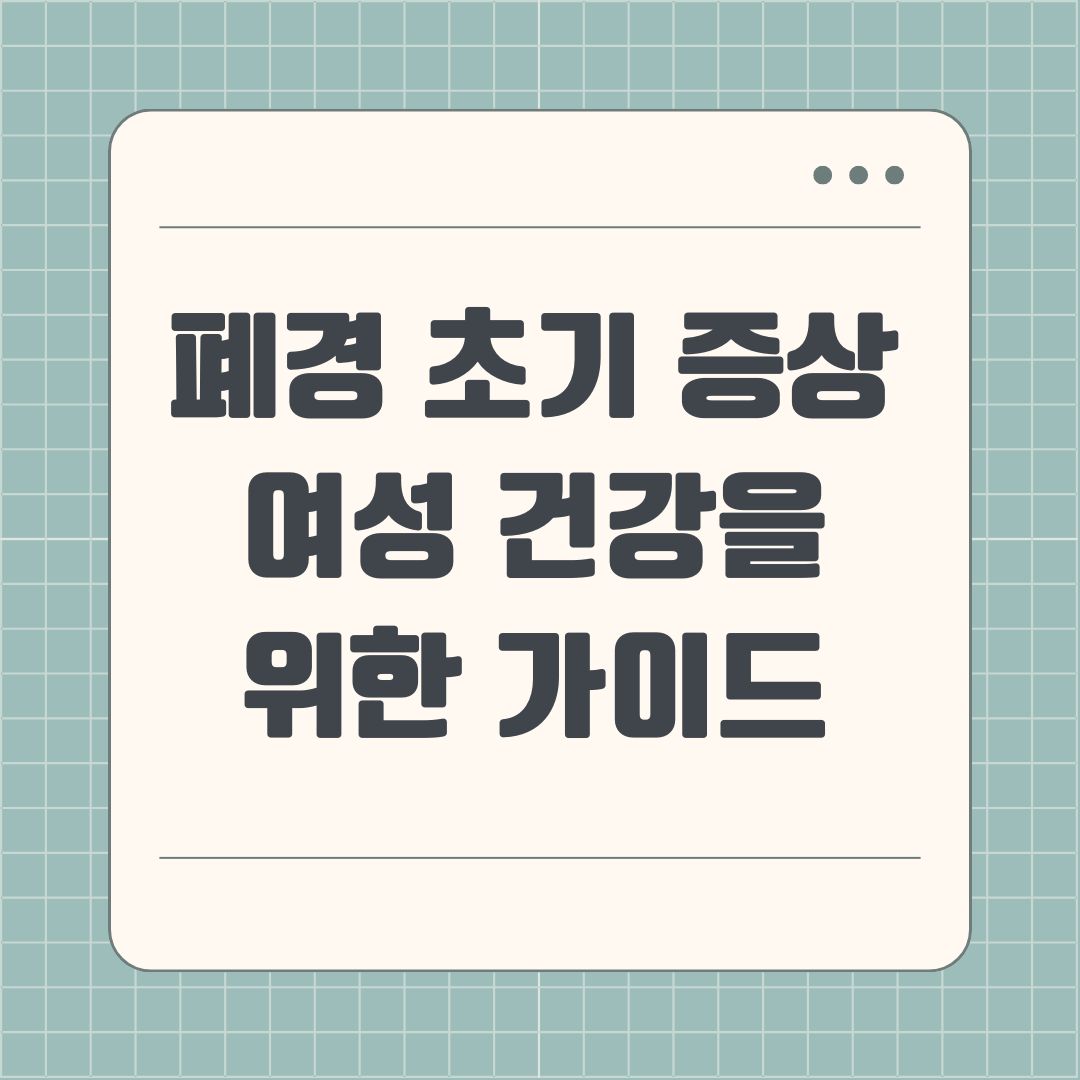 이 글에서는 폐경 초기 증상에 대해 자세히 알아보고, 이를 잘 관리하는 방법을 소개합니다.