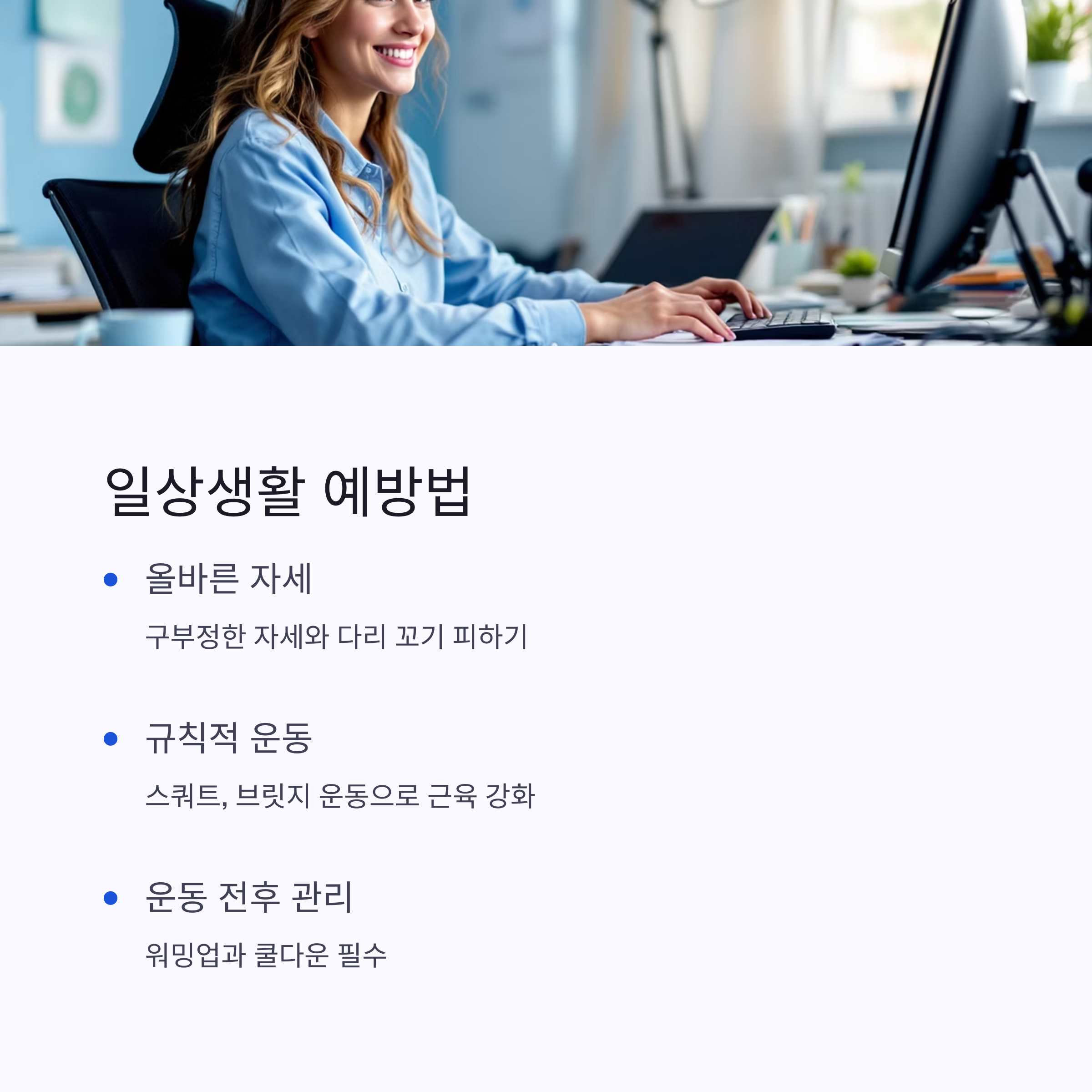 허벅지 뒤쪽 통증을 예방하고 재발을 방지하기 위한 생활 속 팁들을 알려드릴게요.