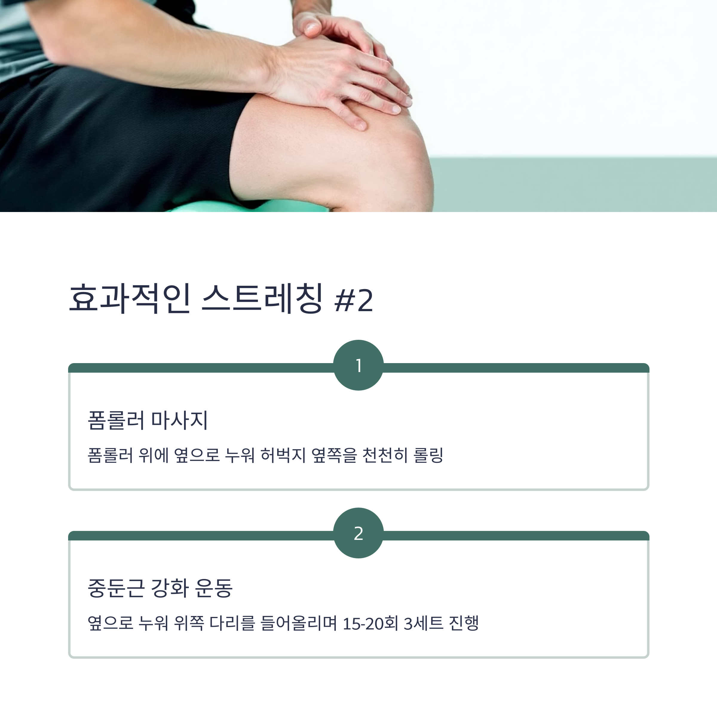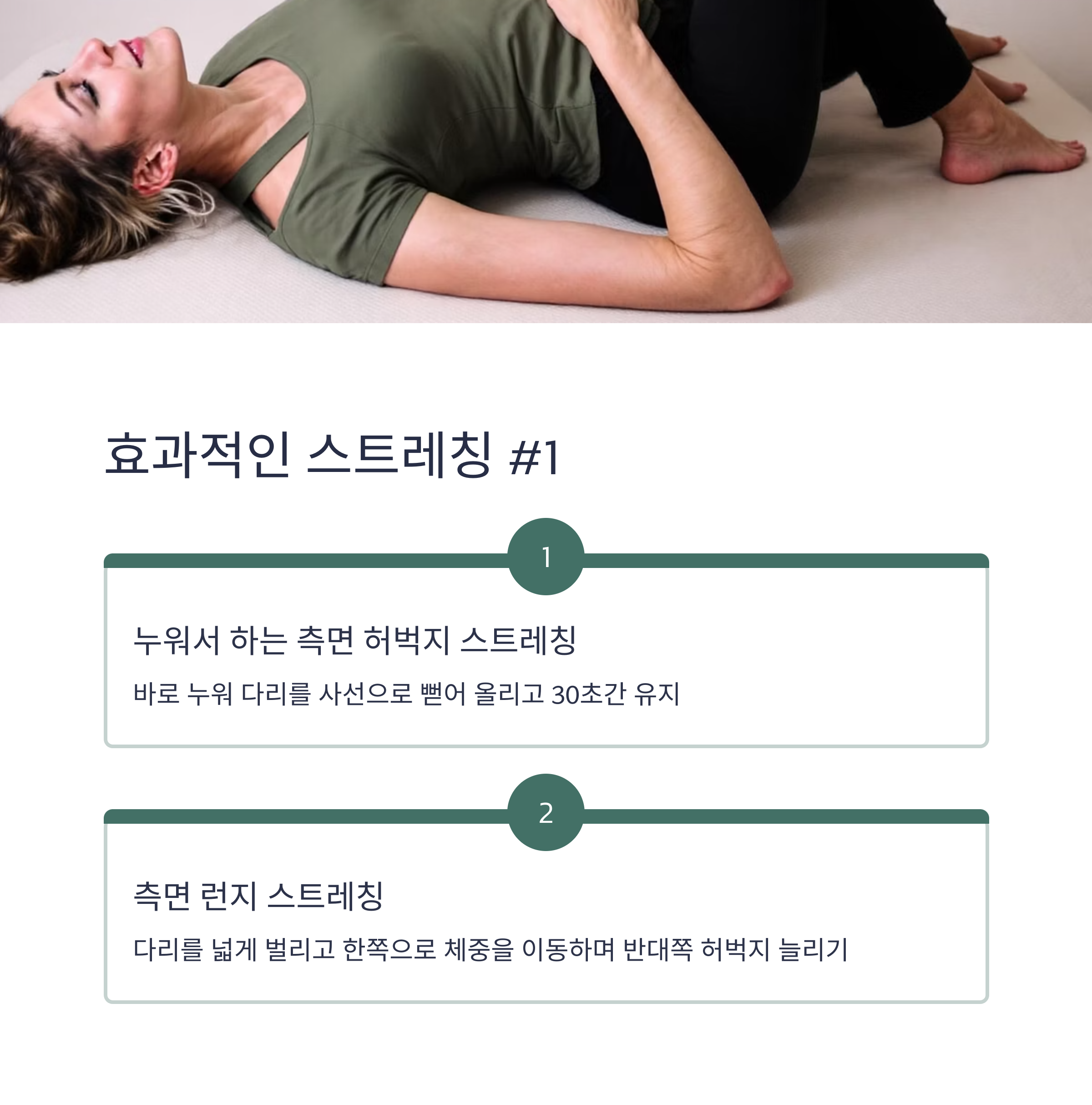 허벅지 옆쪽 통증 완화에 가장 효과적인 방법은 꾸준한 스트레칭이에요. 제가 직접 해보고 효과를 본 스트레칭 방법들을 소개해드릴게요.
