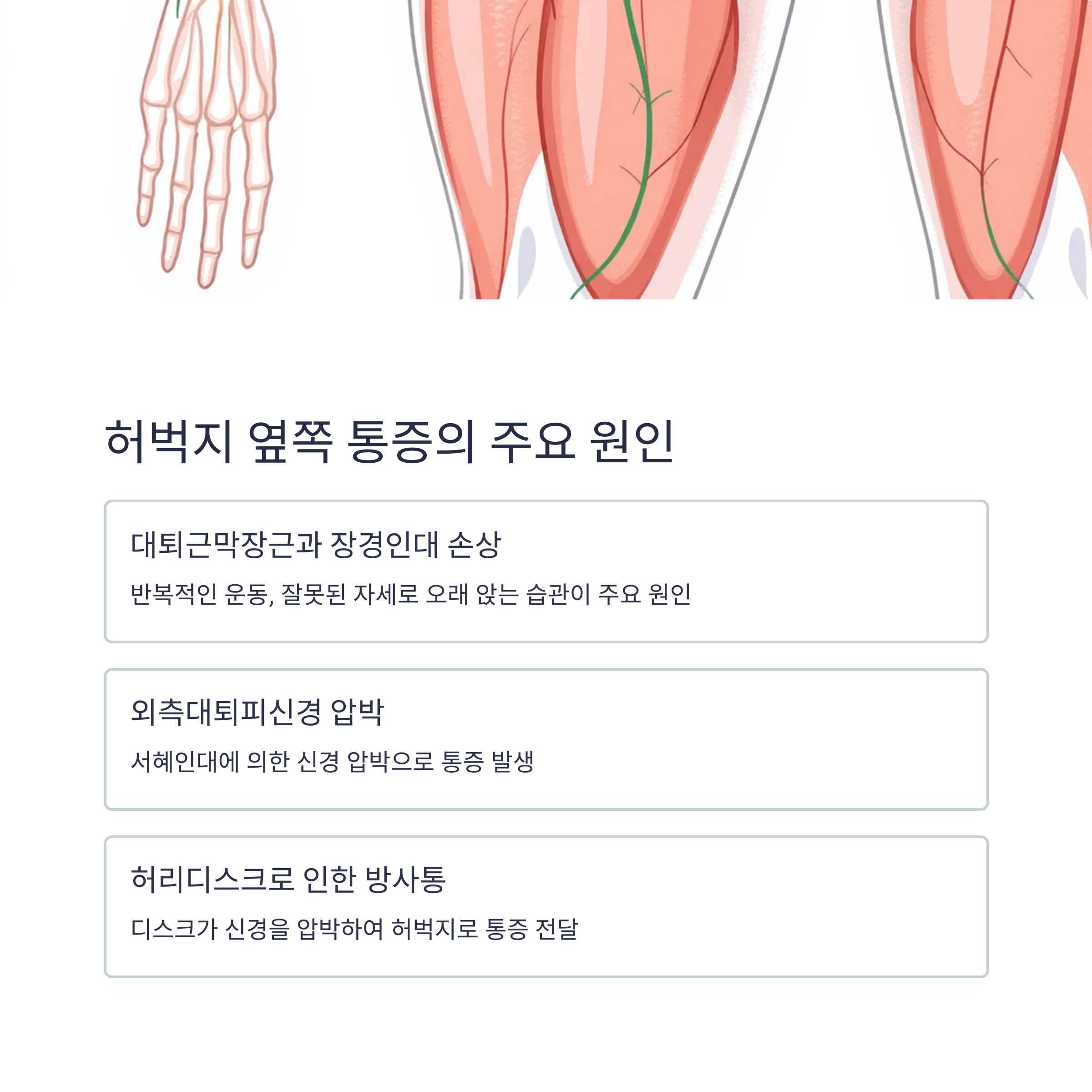허벅지 옆쪽 통증은 다양한 원인으로 발생할 수 있어요. 단순히 근육이 뭉쳤다고 생각하기 쉽지만, 실제로는 여러 가지 복합적인 요인이 작용할 수 있거든요[4].