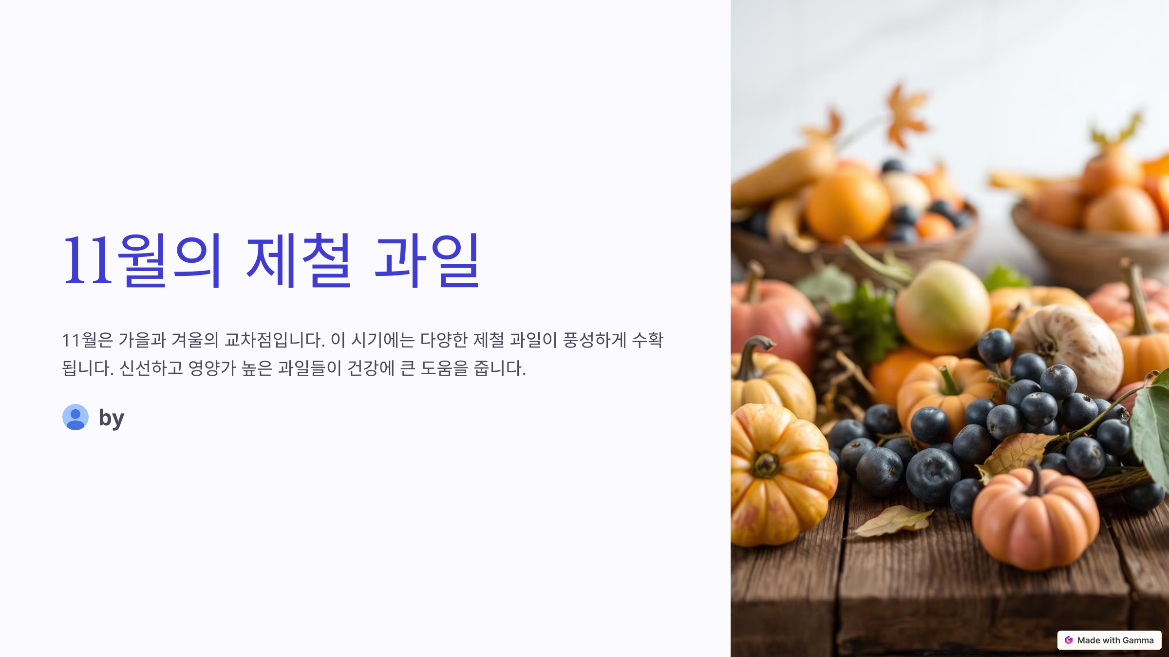 11월에는 감귤, 포도, 사과, 배 등 다양한 제철 과일들이 신선하게 제공됩니다.