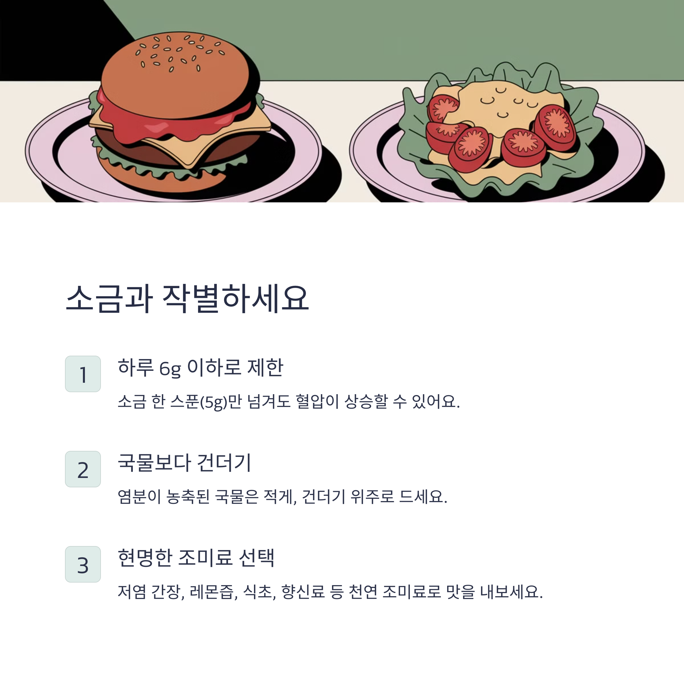 1. 저염식으로 소금 섭취 줄이기